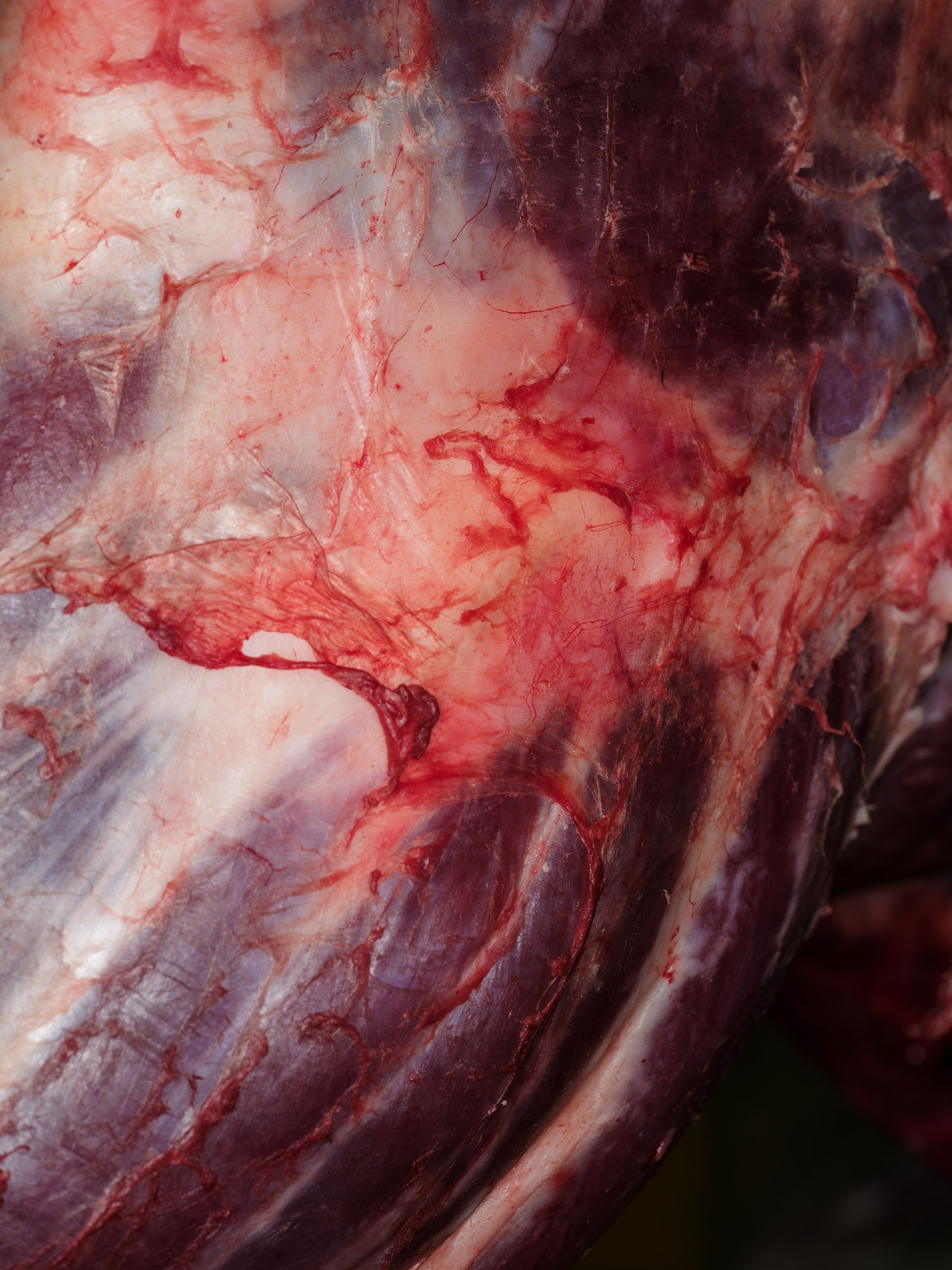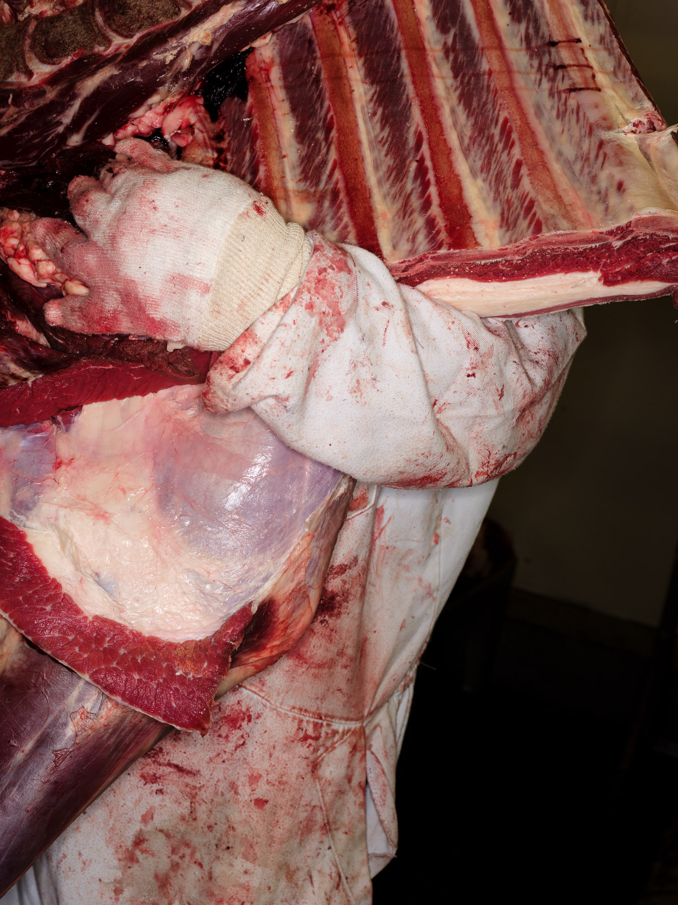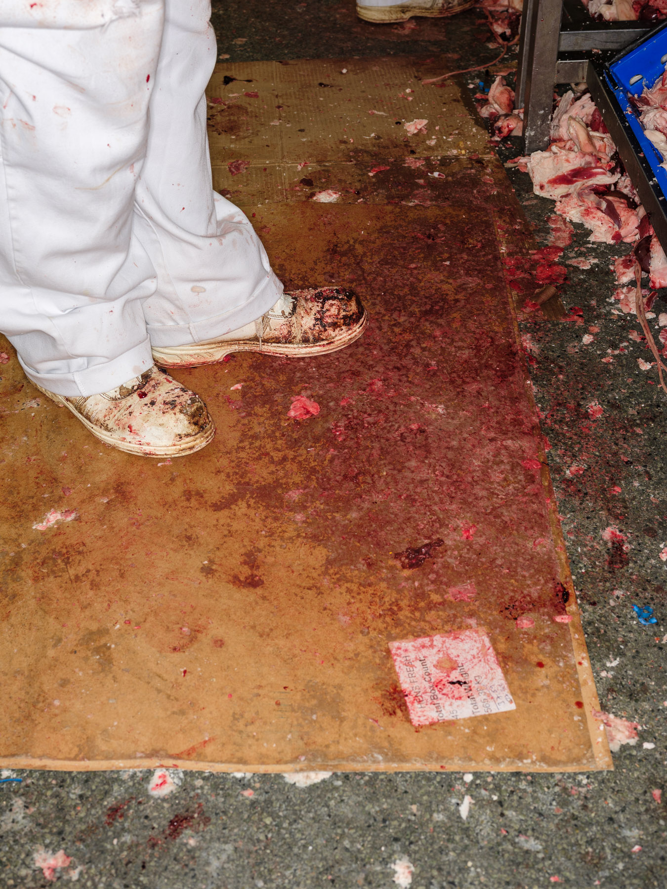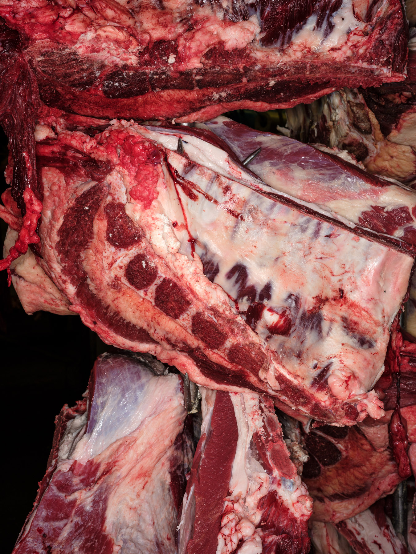 The Body & The Blood is a photographic response to the impending closure of Smithfield Meat Market in the heart of the City of London. Once a ‘smooth field’ outside of the city walls, animals have been traded at Smithfield for over 900 years, in a history characterised by both spirituality and violence - the two often intertwined. Honouring the market and those who work there, the work draws on a rich symbolism, to reflect not only on the upheaval inherent in the ‘progress’ of urban change, and the multitude of violences that Smithfield has witnessed, but also of a more universal suffering.