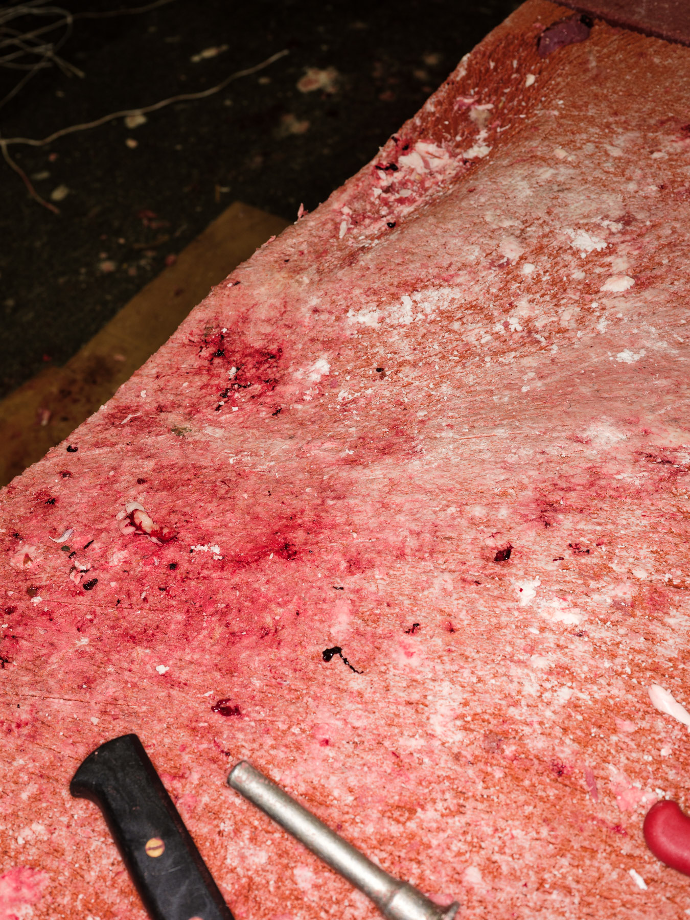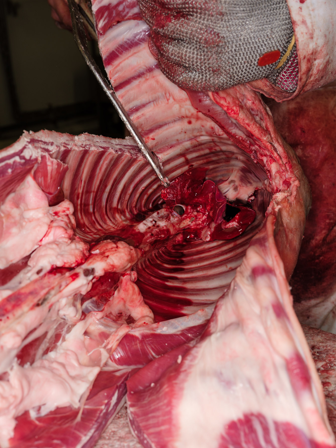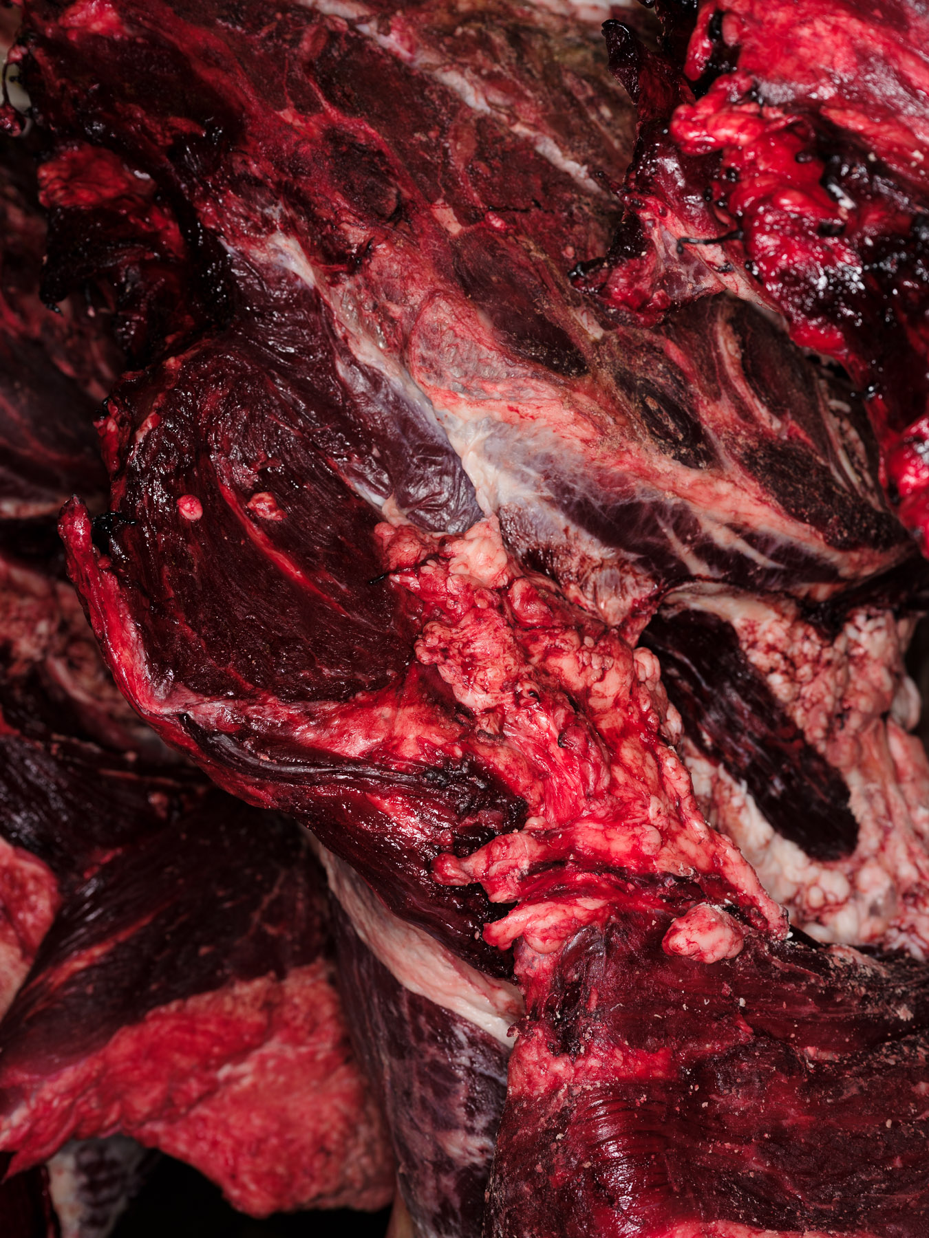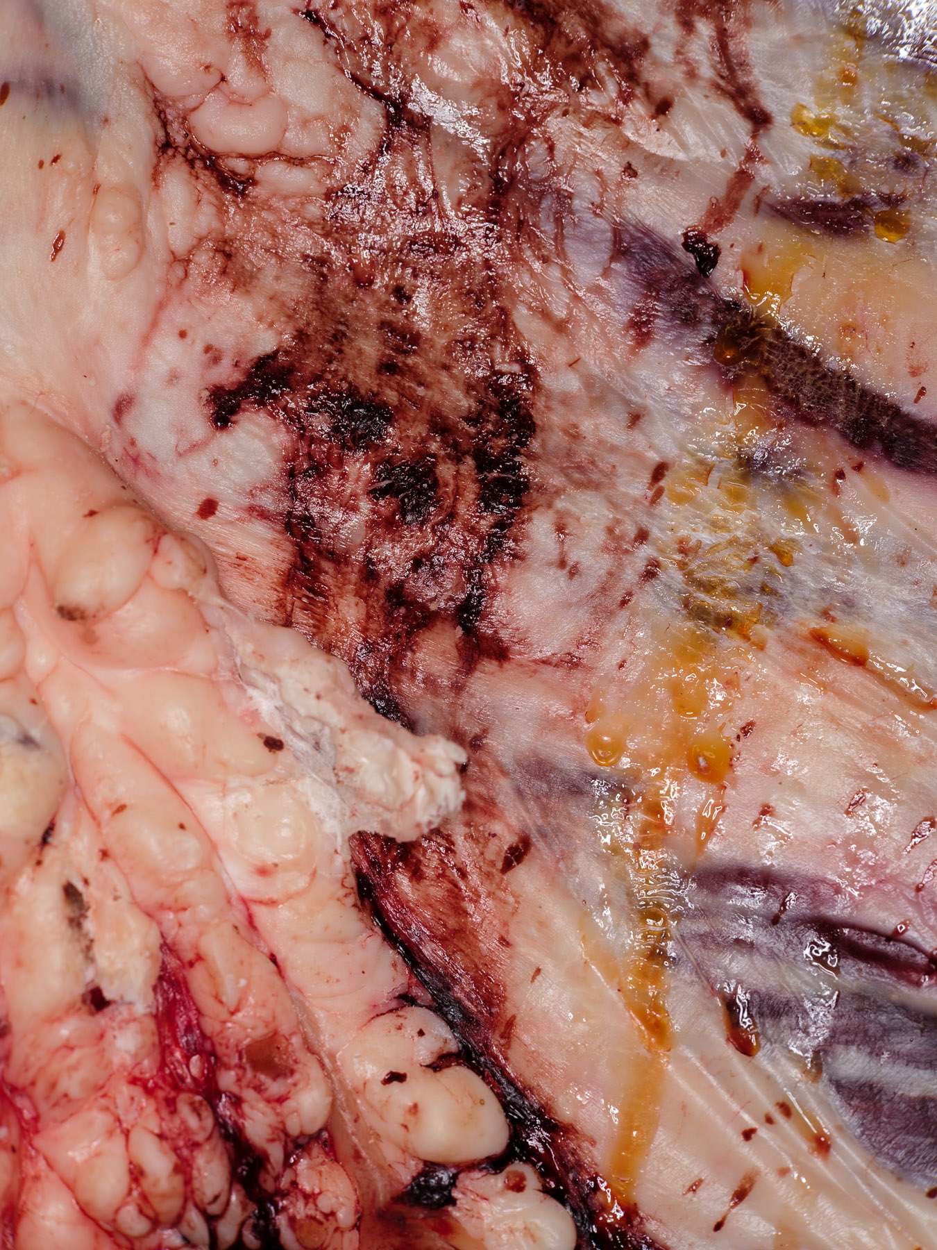 The Body & The Blood is a photographic response to the impending closure of Smithfield Meat Market in the heart of the City of London. Once a ‘smooth field’ outside of the city walls, animals have been traded at Smithfield for over 900 years, in a history characterised by both spirituality and violence - the two often intertwined. Honouring the market and those who work there, the work draws on a rich symbolism, to reflect not only on the upheaval inherent in the ‘progress’ of urban change, and the multitude of violences that Smithfield has witnessed, but also of a more universal suffering.