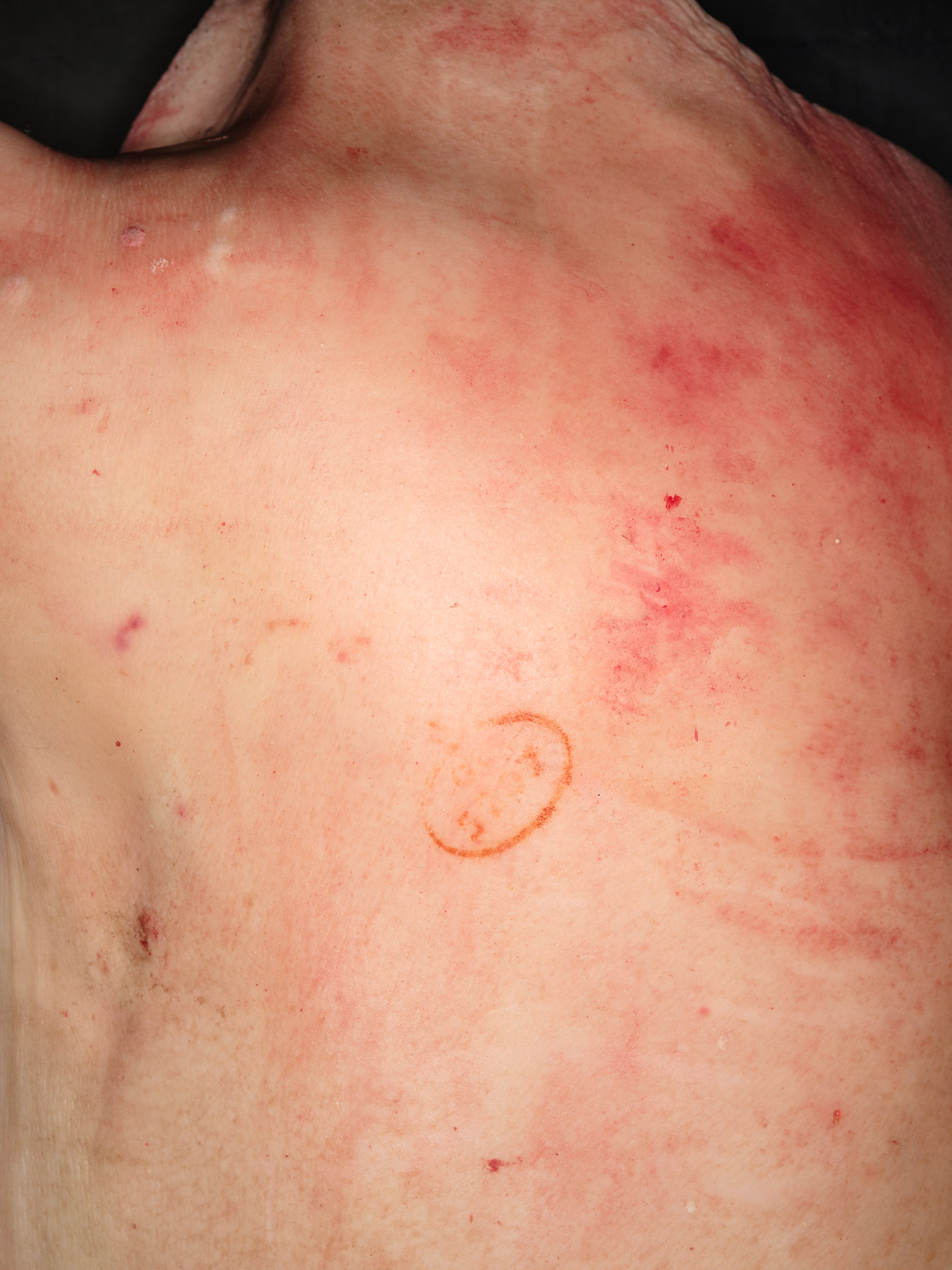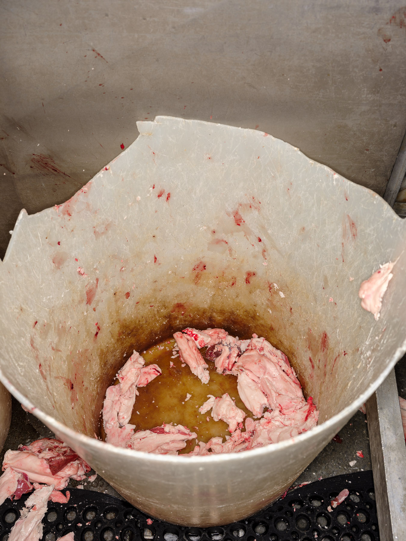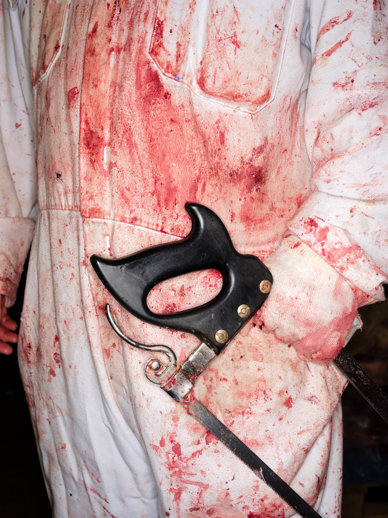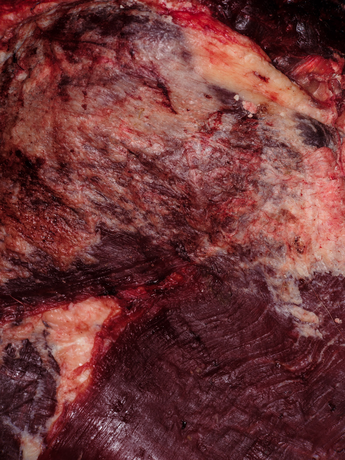 The Body & The Blood is a photographic response to the impending closure of Smithfield Meat Market in the heart of the City of London. Once a ‘smooth field’ outside of the city walls, animals have been traded at Smithfield for over 900 years, in a history characterised by both spirituality and violence - the two often intertwined. Honouring the market and those who work there, the work draws on a rich symbolism, to reflect not only on the upheaval inherent in the ‘progress’ of urban change, and the multitude of violences that Smithfield has witnessed, but also of a more universal suffering.